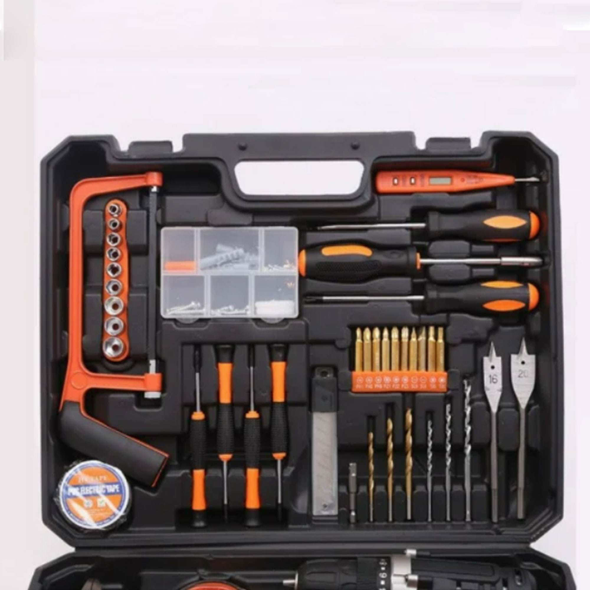 معها صندوق تخزين قوي فيه تقسيمات، يسهل عليك تنظيم الأدوات.