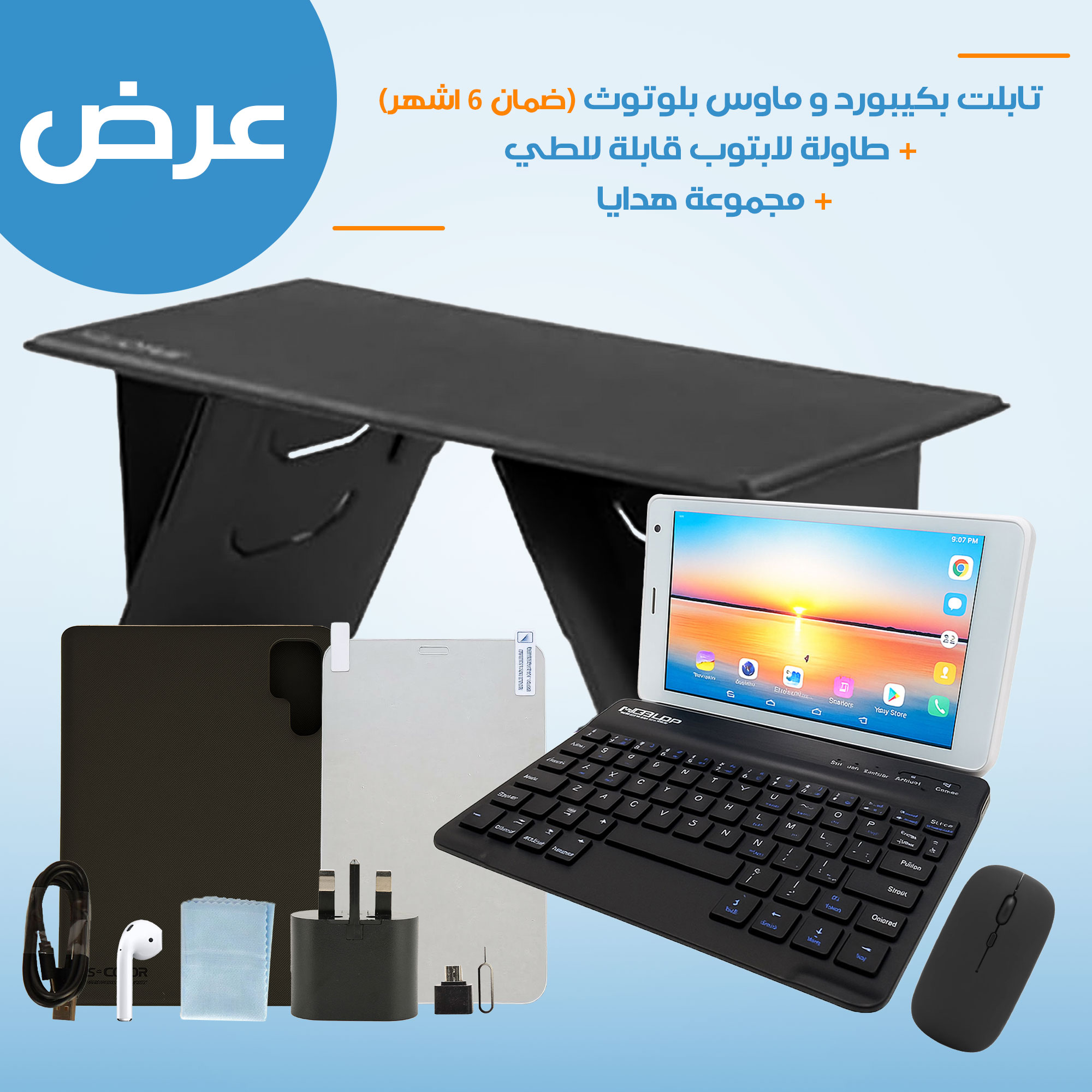 تابلت بكيبورد و ماوس بلوتوث ( ضمان 6 اشهر ) + طاولة لابتوب قابلة للطي + مجموعة هدايا
