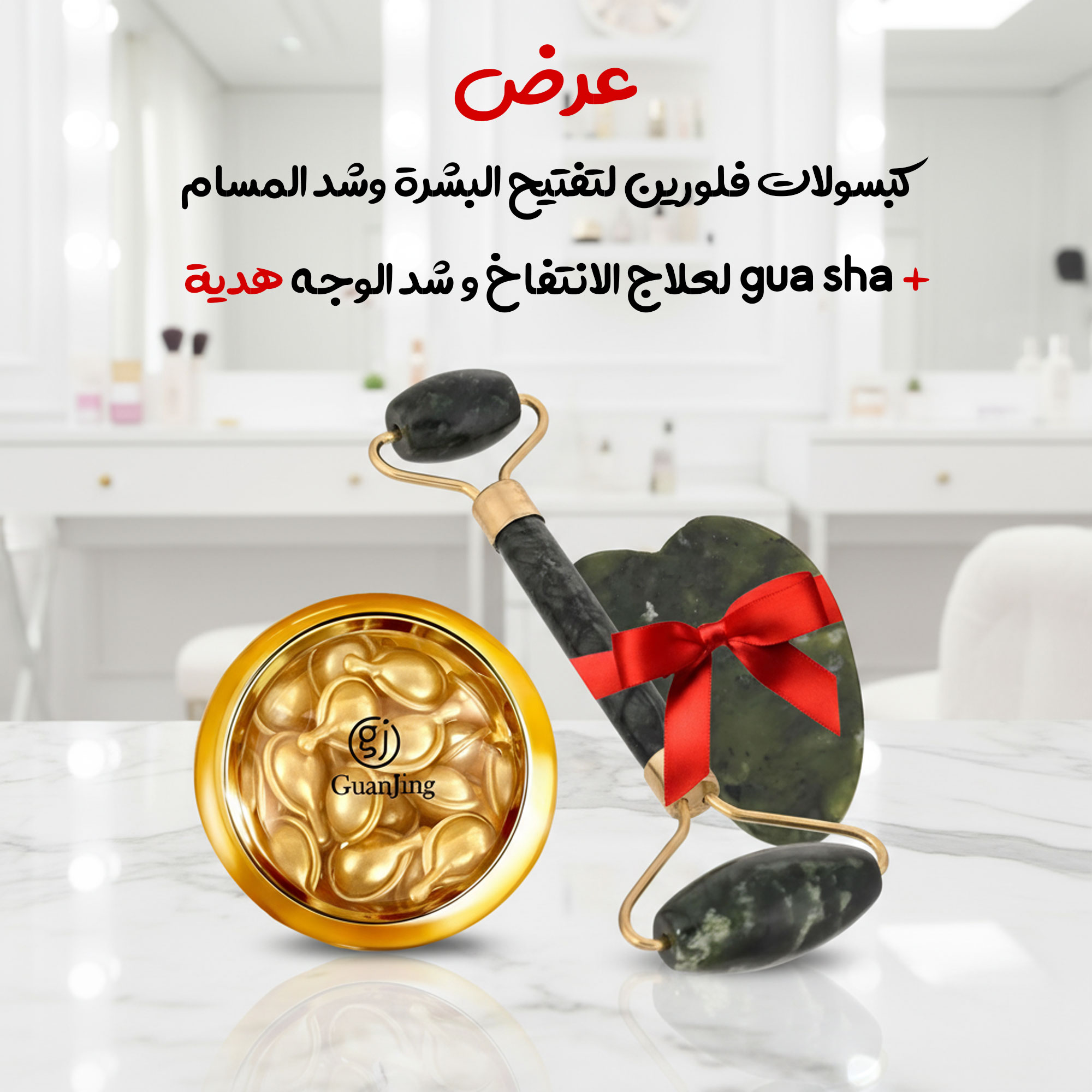 كبسولات جوهر فوليرين + Gua Sha حجر اليشم | روتين عناية متكامل لبشرة مشدودة ومشرقة